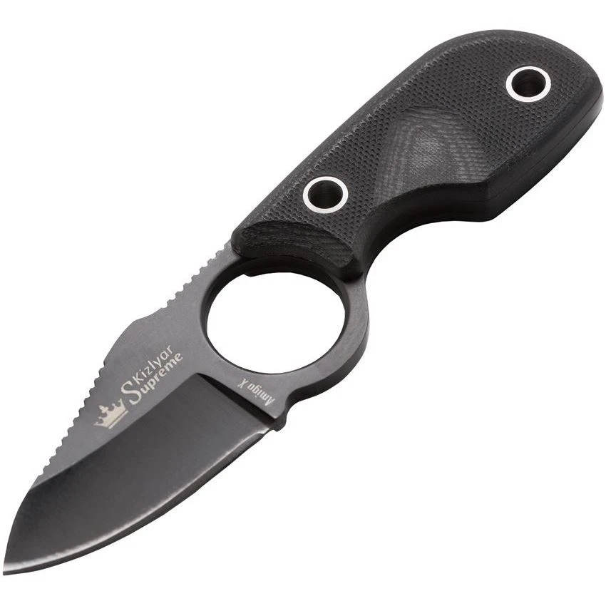 - Kizer 0089 – Amigo X Neck Fixed Black Tini Finish Blade Knife with Black G-10 Handles