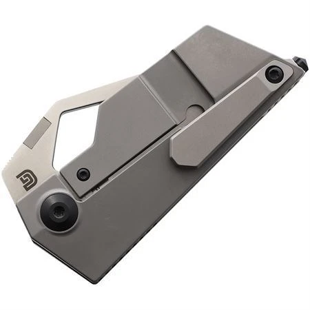 Model – KI2563A1. Kizer 2563A1 – CyberBlade Linerlock Knife. 3.5″ (8.89cm) closed. 2.25″ (5.72cm) satin finish S35VN stainless tanto blade. Gray titanium handle. Thumb pull. Thumb disk. Glass breaker. Pocket clip. Black nylon pouch. Boxed. Made in China.
