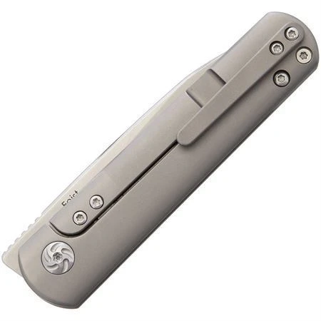 Model – KI3499. Kizer 3499 – Feist Framelock Folding Pocket Knife. 3.75″ closed. 2.75″ stonewash finish CPM S35VN stainless drop point blade. Gray matte finish titanium handle. Pocket clip. Designed by Justin Lundquist. camo nylon zippered storage case. Boxed. Made in China.