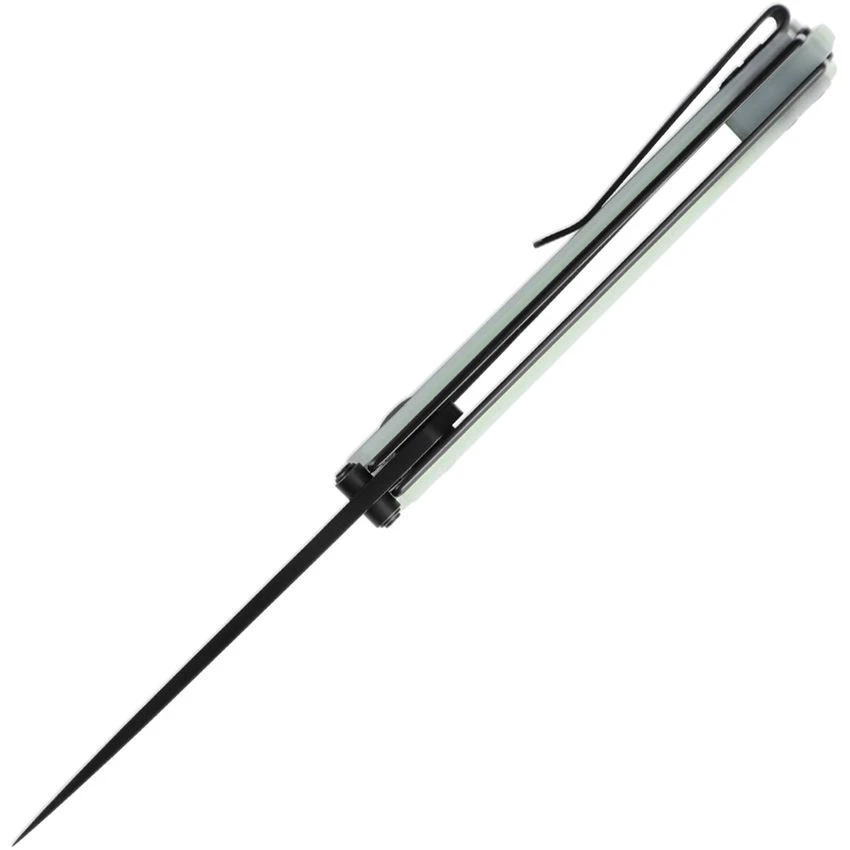 Model/Part Number – KIV3516N7. Kizer Cutlery & Knives Mini Domin Linerlock Jade. 4″ (10.16cm) closed. 2.75″ (6.99cm) black finish Bohler N690 stainless blade. Jade G10 handle. Thumb stud. Lanyard hole. Extended tang. Pocket clip. Boxed. Made in China.