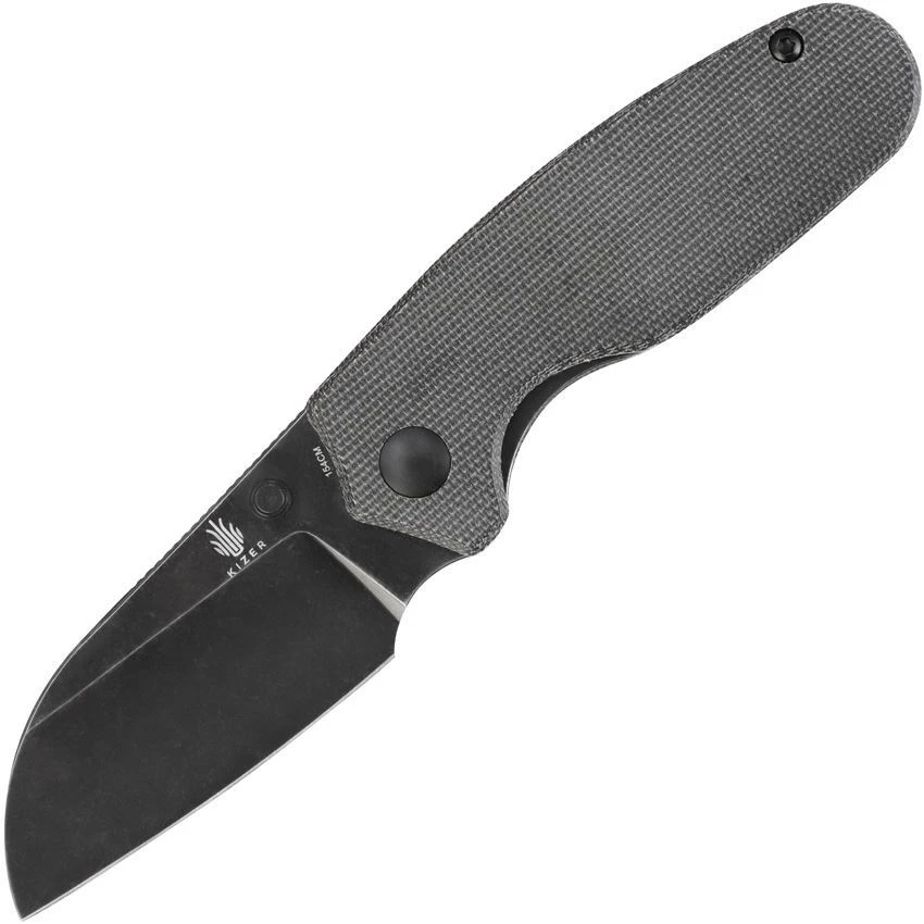 Model/Part Number – KIV3593SC2. Kizer Towser K Linerlock Micarta. 4″ (10.16cm) closed. 3″ (7.62cm) black stonewash finish 154CM stainless blade. Black micarta handle. Thumb stud. Pocket clip. Boxed. Made in China.
