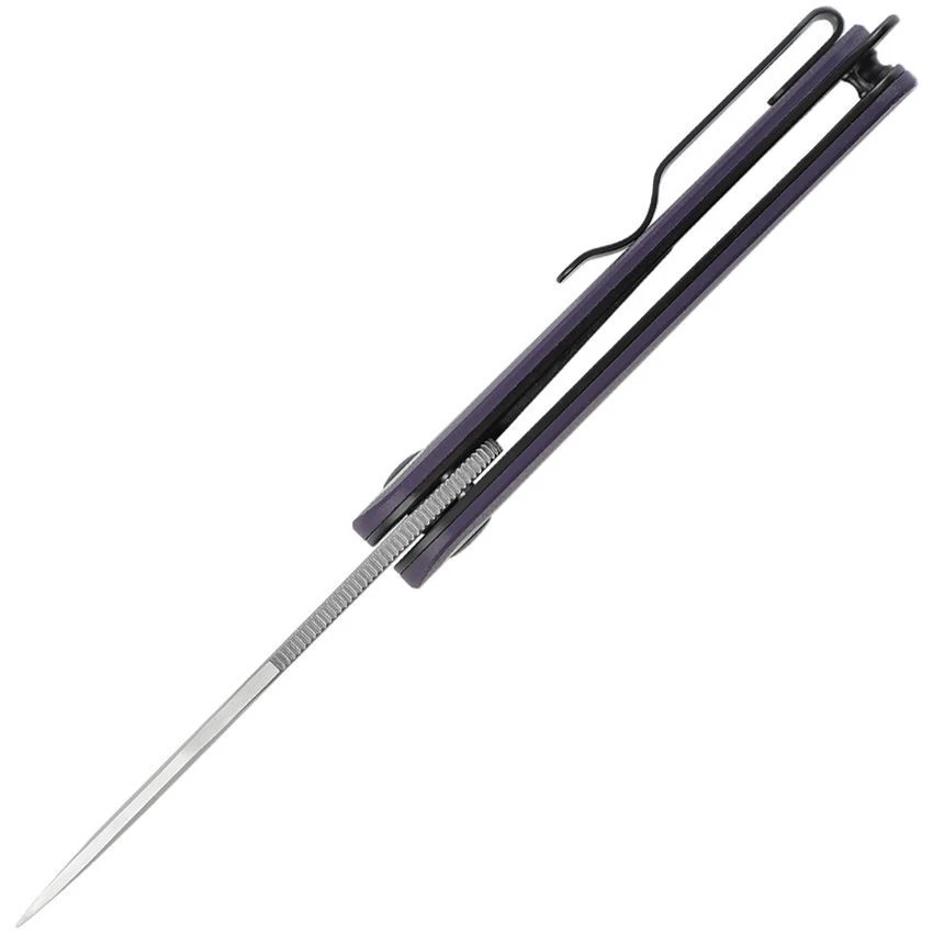 Model/Part Number – KIV3604C1. Kizer Squidward Linerlock Purple. 4″ (10.16cm) closed. 2.75″ (6.99cm) satin finish 154CM stainless blade. Purple G10 handle. Lanyard hole. Extended tang. Boxed. Made in China.
