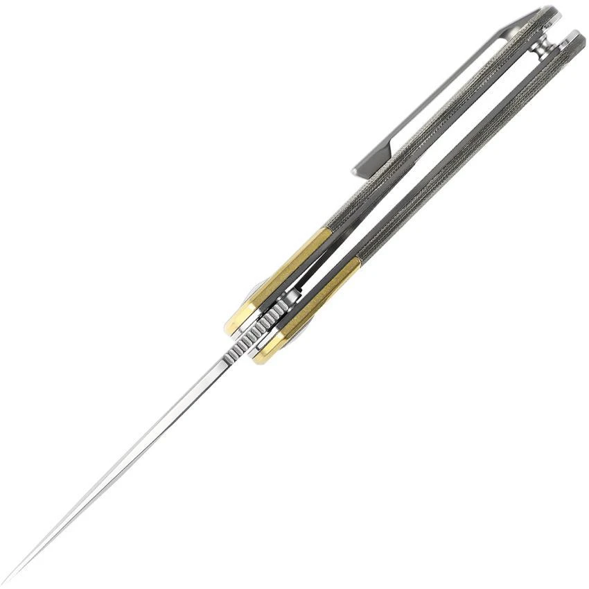 Model/Part Number – KIV3614C1. Kizer Cutlery & Knives Comet Linerlock Green. 4″ (10.16cm) closed. 2.88″ (7.32cm) satin finish 154CM stainless clip point blade. Green linen micarta handle. Brass bolster(s). Extended tang. Lanyard hole. Pocket clip. Boxed. Made in China.