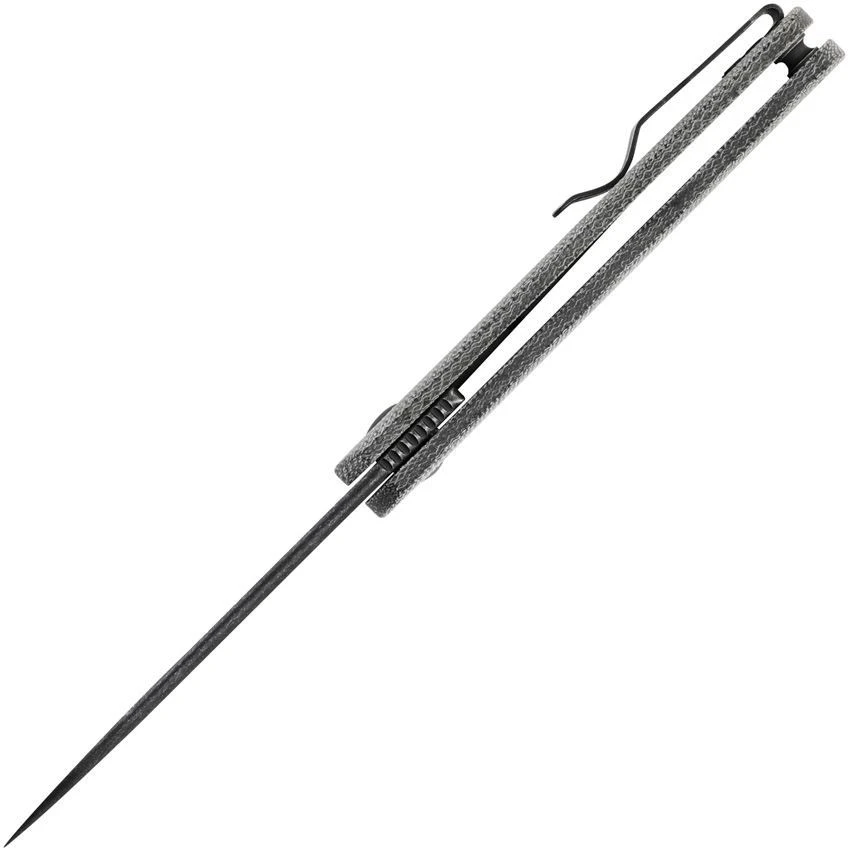 Model/Part Number – KIV4499C2. Kizer Fiest XL Linerlock Micarta. 4.38″ (11.13cm) closed. 3.25″ (8.26cm) black stonewash finish 154CM stainless blade. Black canvas micarta handle. Extended tang. Pocket clip. Boxed. Made in China.