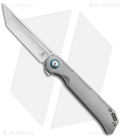 The Kizer Begleiter flipper is an upgraded redesign of Kizer’s budget model that features a full titanium handle with tanto blade made from CPM-S35VN. The handle has milled pockets on the inside to reduce the weight. It includes a milled titanium pocket clip for convenient everyday carry.