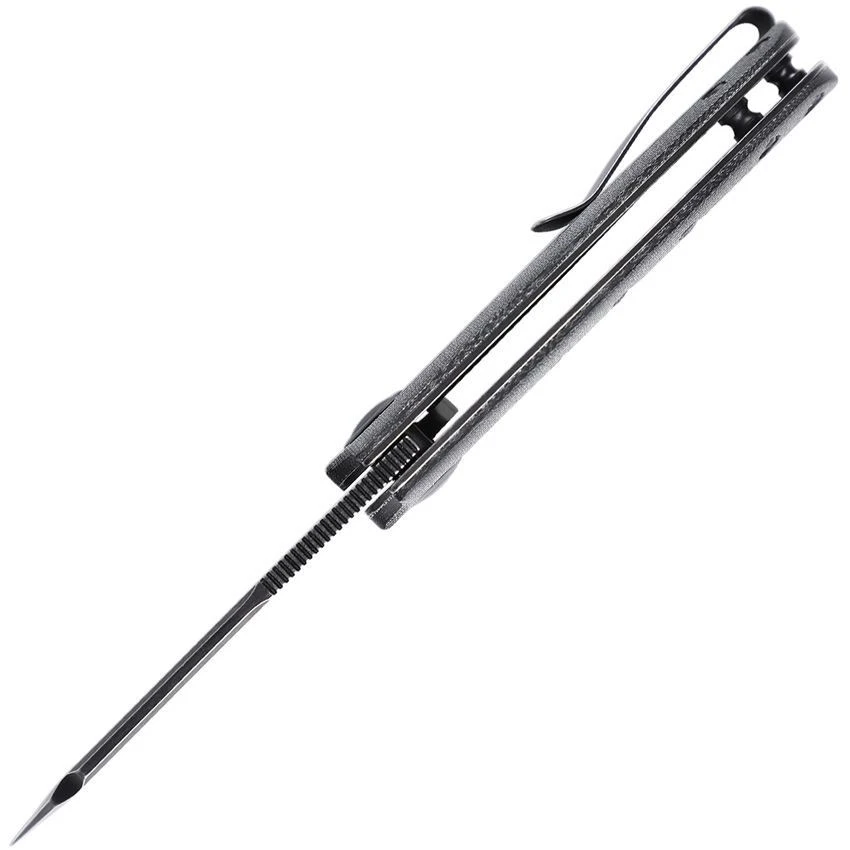 Model/Part Number – KIV3488C6. Kizer Cutlery & Knives Mini Sheepdog Linerlock. 3.5″ (8.89cm) closed. 2.63″ (6.68cm) black stonewash finish 154CM stainless blade. Black and white micarta handle. Thumb pull. Pocket clip. Extended tang. Boxed. Made in China.