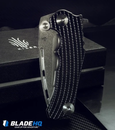 The Kizer Perock represents a collaboration between Kizer Knives and custom knife maker Mikkel Willumsen. This production version of his Urban Tactical custom maintains the unique handle and blade structure, at a fraction of the cost. It has a titanium handle with a machined grid texture and a black anodization. The handle is contoured for a perfect fit in hand with jimping along the spine for a reliable grip. A blue anodized titanium pocket clip finishes off the design.